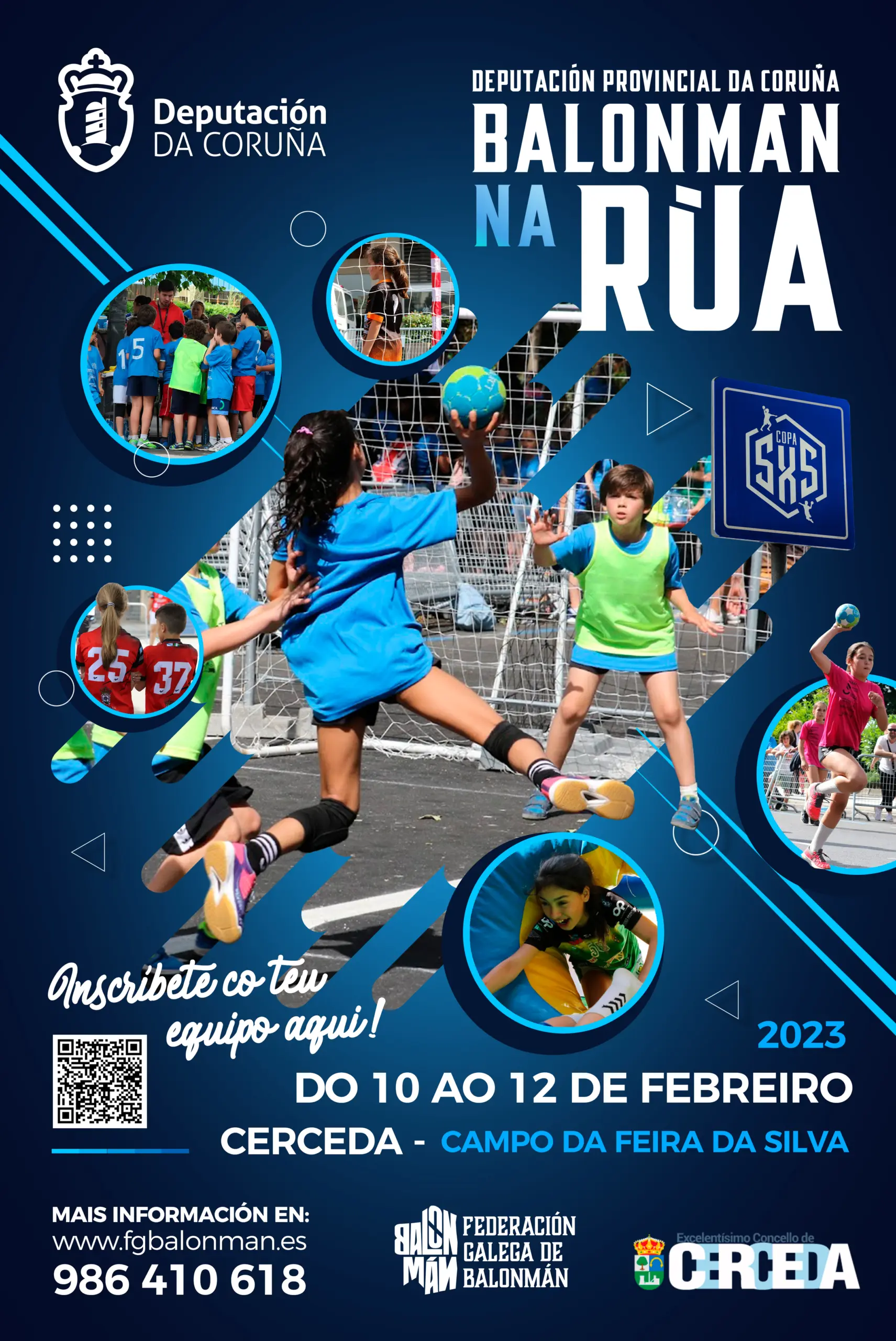 A Copa 5×5 Deputación da Coruña – Balonmán na Rúa conta con sete probas clasificatorias (Carballo, Cerceda, Ferrol, Muros, Arzúa e Ribeira) e a gran final, que se disputará en Camariñas, coa participación dos seis campións das probas anteriores.