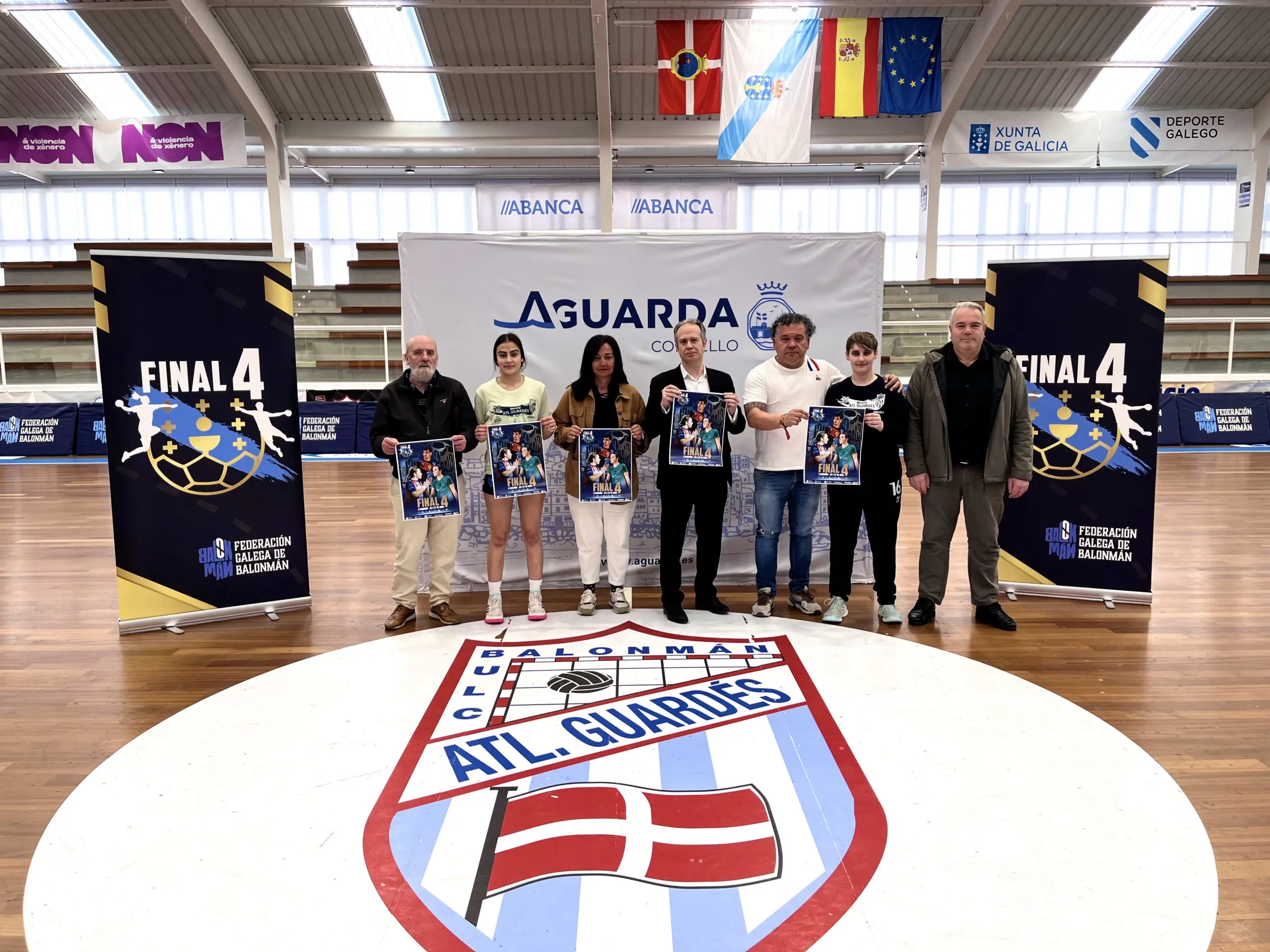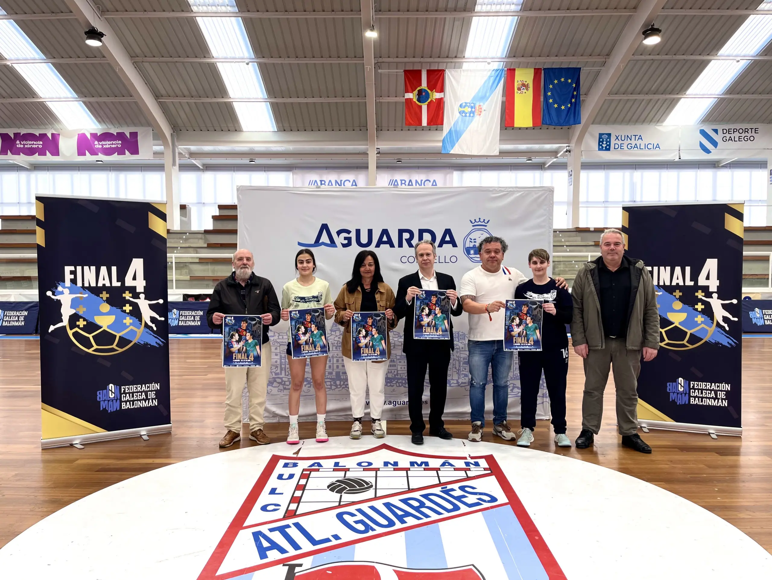 Durante a presentación desta Final 4 contamos coa presenza institucional de Roberto Álvarez, Alcalde do Concello da Guarda; Celso R. Fariñas e Isidro Lomba, Concelleiros de Deportes e de Infraestruturas, Vías e Obras; Jesús López, Presidente do Club Balonmán Atlético Guardés; e Elena Estévez, Responsable da Área Técnica Feminina da Federación Galega de Balonmán.
