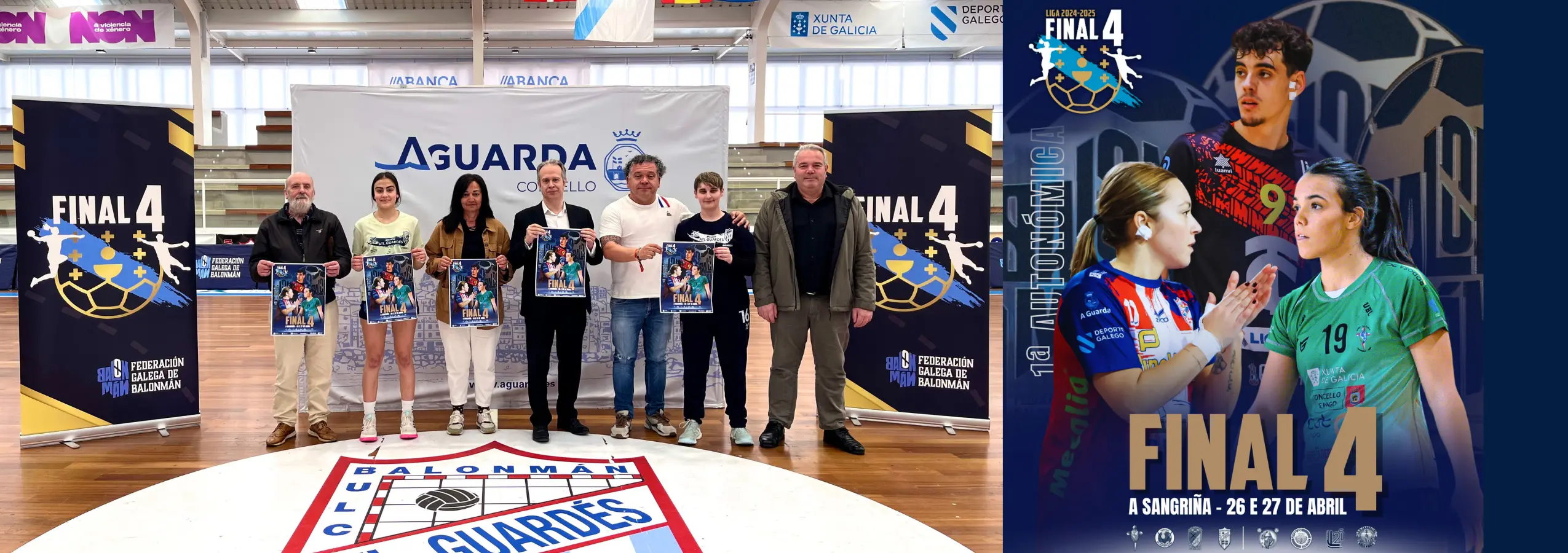 Durante a presentación desta Final 4 contamos coa presenza institucional de Roberto Álvarez, Alcalde do Concello da Guarda; Celso R. Fariñas e Isidro Lomba, Concelleiros de Deportes e de Infraestruturas, Vías e Obras; Jesús López, Presidente do Club Balonmán Atlético Guardés; e Elena Estévez, Responsable da Área Técnica Feminina da Federación Galega de Balonmán.