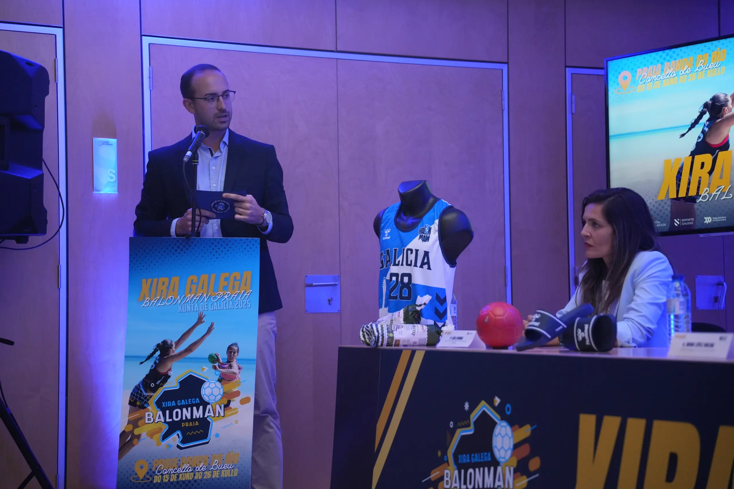 Esta tarde presentouse na Casa do Deporte de Vigo a Xira Galega de Balonmán Praia Xunta de Galicia 2025, o circuíto autonómico da modalidade que máis medrou nos últimos anos na nosa comunidade, cunha cifra que supera os tres mil federados e federadas, e que aspira a converterse en deporte olímpico en Los Ángeles 2028.