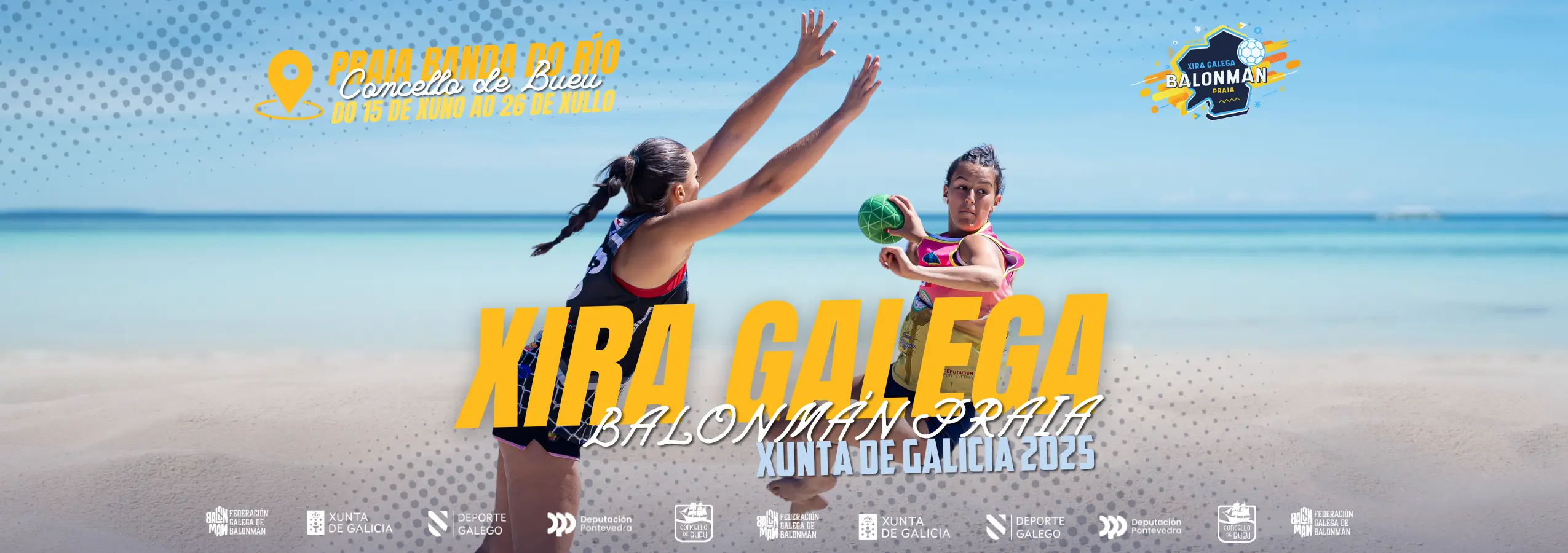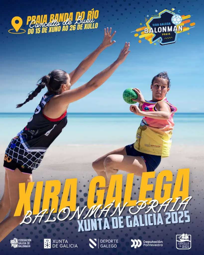A Xira Galega de Balonmán Praia Xunta de Galicia 2025 reafirma o compromiso da Federación Galega de Balonmán coa promoción desta espectacular modalidade, achegando o balonmán a todas as idades e facendo de Galicia un referente estatal no balonmán praia.