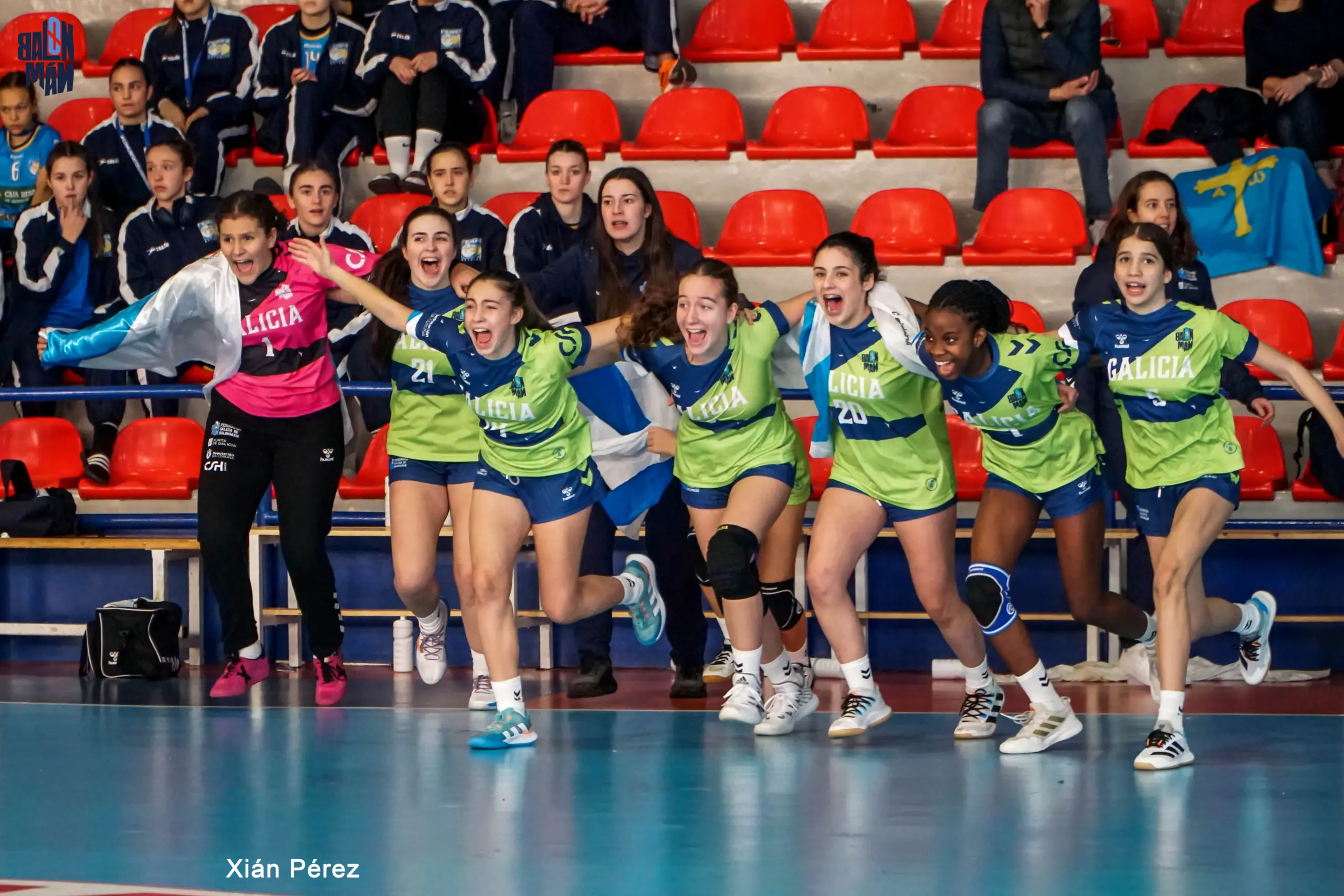 A selección galega cadete feminina acadou o ascenso á Campionato! Primeiro obxectivo acadado polas rapazas dirixidas por Adrián Pumar e agora a soñar! Hoxe enfrontáronse a Asturias nesta loita polo ascenso e, como en días anteriores, a clave estivo na defensa 6:0. O combinado galego saíu moi intenso, con moitas axudas e sen dar opcións a Asturias, que non sabía como librarse desa presión. Así,no minuto 15 o resultado era 10-3. Pero estas rapazas non baixan a intensidade e seguiron presionantes para chegar ao remate dos primeiros 30 minutos cun definitivo 18-6. O inicio da segunda metade seguiu cos mesmos parámetros e a vantaxe ampliouse ata os 16 goles (23-7, min- 35) e iso permitiu a Pumar dar minutos a todas as xogadoras para así chegar en mellores condicións ao partido de mañá de cuartos de final do Campionato de España ante Navarra, segunda clasificada do grupo A.