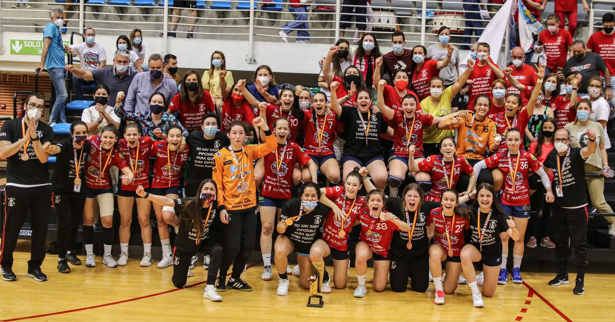 Foi un bronce épico. O BM Porriño logrou remontar cinco goles de diferenza nos últimos minutos, e empatou o partido nos segundos finais, tanto no tempo regulamentario como na prórroga, para despois impoñerse nos lanzamentos de sete metros ao Sant Vicenç. E todo grazas a loita dun equipo que non se rende nunca e non deixou de crer nelas mesmas.