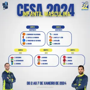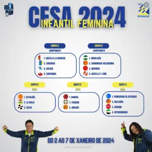 A priori, a selección infantil masculina, dirixida por Adrián Menduíña, Carlos Rodríguez e Álex Seijo terá que competir no grupo máis complicado, integrado por Castela e León, Cataluña e Andalucía; todo un reto para un combinado que nos últimos anos está a competir de xeito exemplar en todos e cada un dos encontros que afronta.