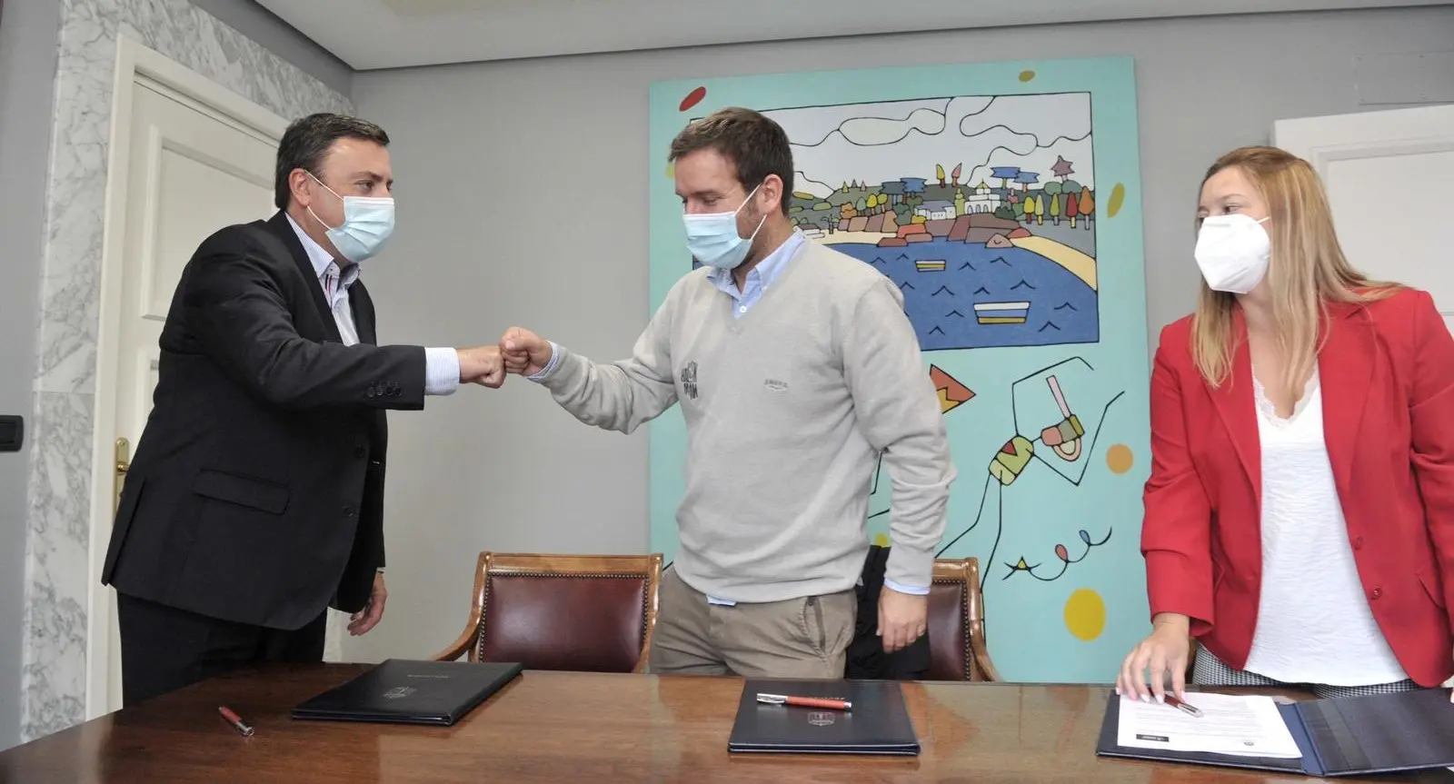 No acto da sinatura de hoxe participaron o presidente da Federación Galega de Balonmán, Bruno López, o presidente da Deputación de Coruña, Valentín González Formoso, e a deputada de Deportes, Cristina Capelán.