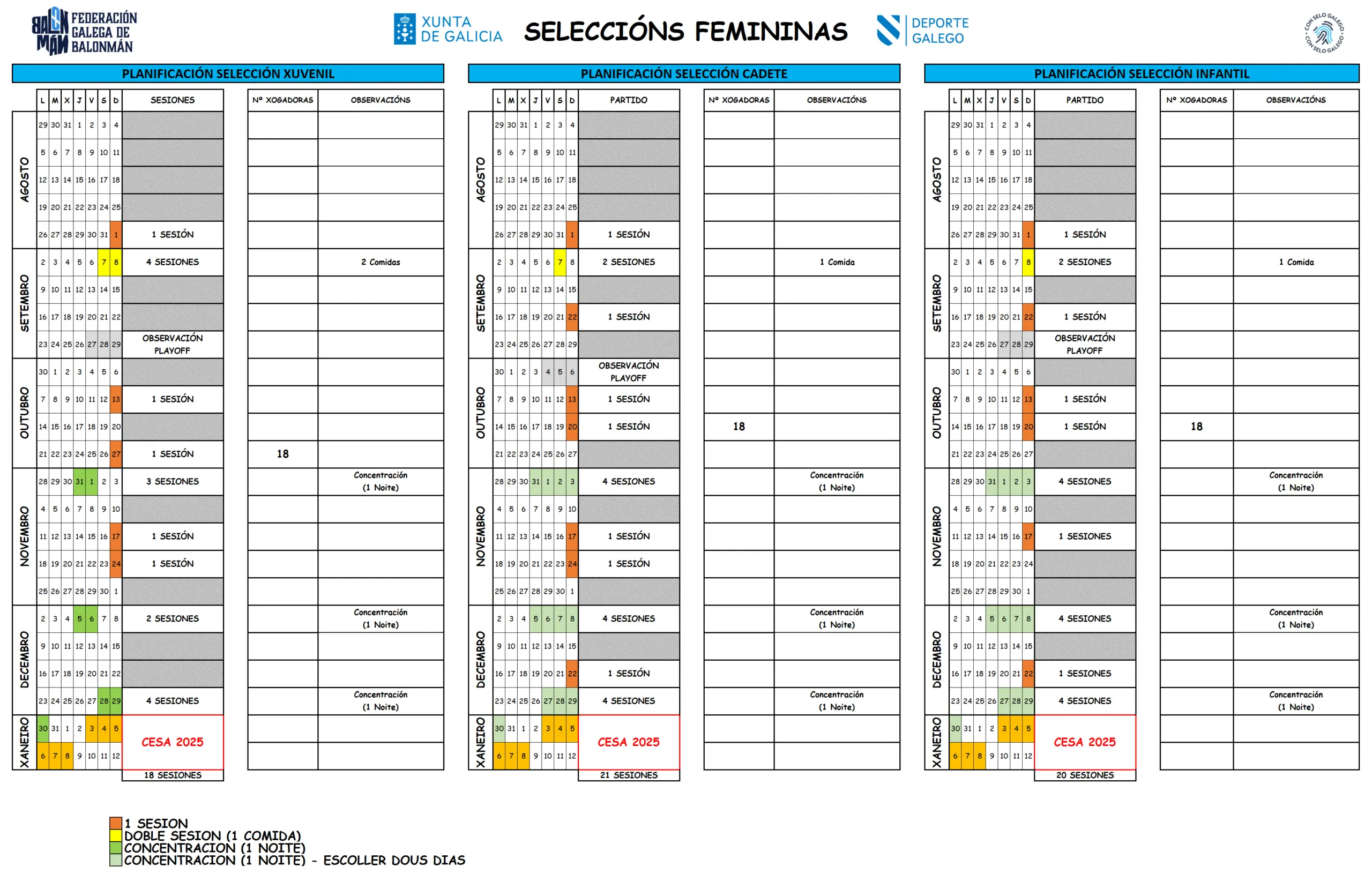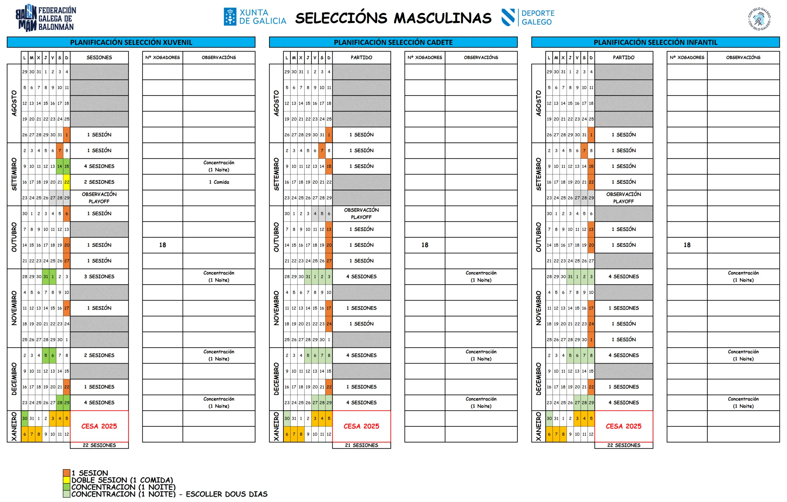 As seleccións galegas comezarán a súa actividade esta fin de semana (1 de setembro) para chegar do mellor xeito ao CESA 2025 que se celebrará en Cataluña.