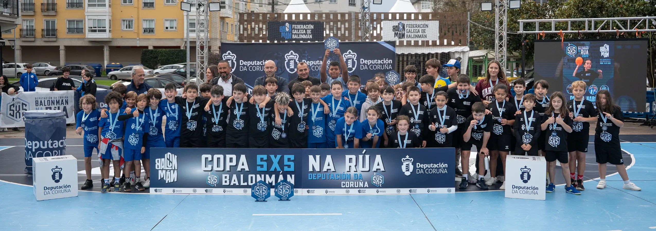 A Copa 5×5 de Balonmán na Rúa da Deputación da Coruña completou esta fin de semana unha nova parada no Concello de Narón, onde pequenos e pequenas deportistas gozaron dun evento marcado polo bo ambiente, a diversión e a alta participación, a pesar de que a xornada comezou con chuvia.