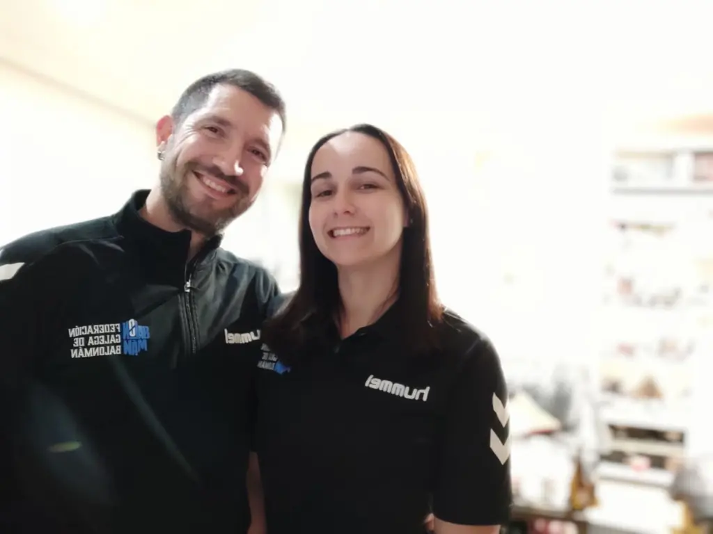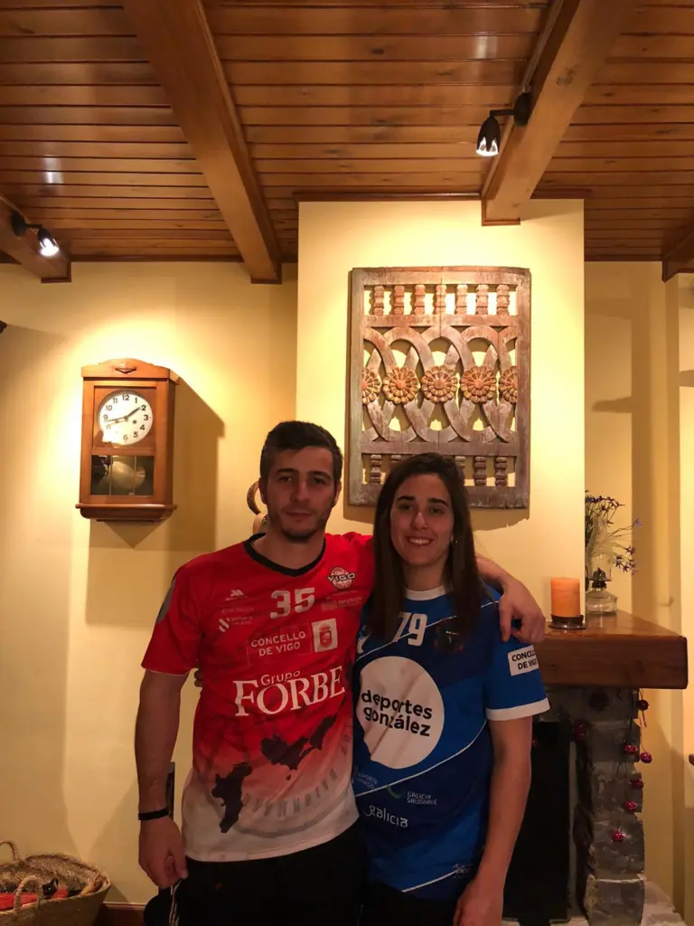 E fronte a unha parella consolidada no tempo, temos a unha que comeza a dar os seus primeiros pasos, aínda que se coñecen dende hai tempo. Marcos Pérez Outeda (árbitro nacional) e Viviana Meira (adestradora do equipo infantil do Balonmán Cangas e anotadora/cronometradora) comezaron a súa relación hai pouco máis de catro meses, pese a que se coñecen dende hai anos. “Hai anos que a coñezo de vista, en balonmán as  relacións personais son bastantes próximas co Balonmán na Rúa, balonmán praia, torneos e competición. Hai un par de anos din un curso en Cangas e quizais aí falamos un pouco máis, pero nunha reunión de anotadores/cronometradores e árbitros na federación, as nosas miradas se cruzaron, comezamos a falar e xa non puidemos deixar de facelo”, contounos Marcos. Están nos inicios, e de momento non houbo discusións, porque como chancea Vivi “aínda non me arbitrou!”. Ambos son licenciados en Educación Física, outro punto de unión xunto ao balonmán, onde tamén recoñecen que “é un tema demasiado recorrente”, indica Vivi. Pero claro, é a súa vida, como non falar do balonmán!: “Falamos dos seus partidos como adestradora, dos  meus arbitrando… Ademais encaixar os nosos horarios na fin de semana é complicado. Sempre é agradable que ela veña designada de anotadora/ cronometradora nos meus partidos e  aí formamos un gran equipo”, conclúe Marcos.
